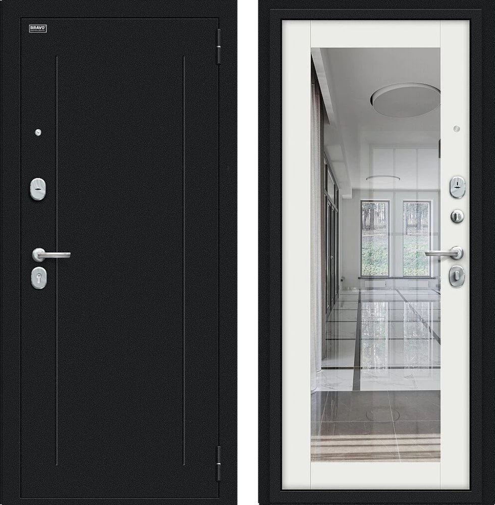 Надежная входная Дверь Браво Флэш Букле черное/Off-white премиум класса по цене 33 731 руб. Большая толщина стали защитит от проникновения в ваш дом, квартиру или коттедж. Используется очень качественная фурнитура: замки, цилиндры, ручки, защелки. Покрытие и отделка двери изготовлено под внимательным контролем производителя. Дверь имеет долгий срок службы и гарантию.