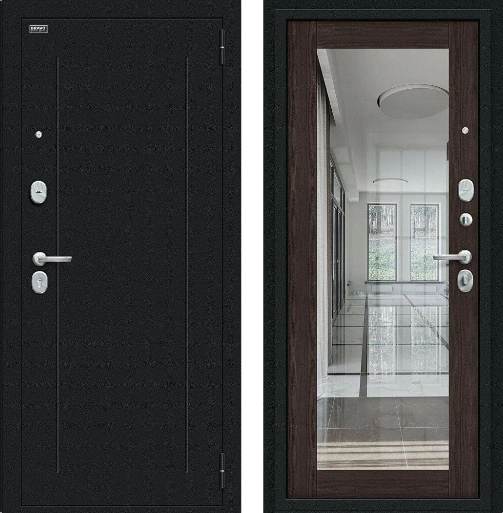Надежная входная Дверь Браво Флэш Букле черное/Wenge Veralinga премиум класса по цене 32 781 руб. Большая толщина стали защитит от проникновения в ваш дом, квартиру или коттедж. Используется очень качественная фурнитура: замки, цилиндры, ручки, защелки. Покрытие и отделка двери изготовлено под внимательным контролем производителя. Дверь имеет долгий срок службы и гарантию.