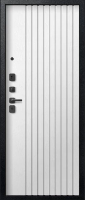 Надежная входная Дверь V-15 Черный муар + Бетон темный - Софт ясень белый премиум класса по цене 43 631 руб. Большая толщина стали защитит от проникновения в ваш дом, квартиру или коттедж. Используется очень качественная фурнитура: замки, цилиндры, ручки, защелки. Покрытие и отделка двери изготовлено под внимательным контролем производителя. Дверь имеет долгий срок службы и гарантию.